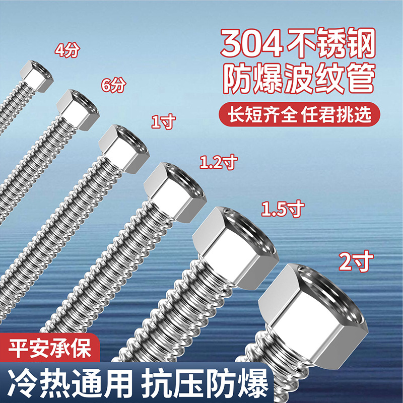 霊轩304ステンレスベローズ防爆太陽熱温水器給水ホース4分6分1インチメタルホース