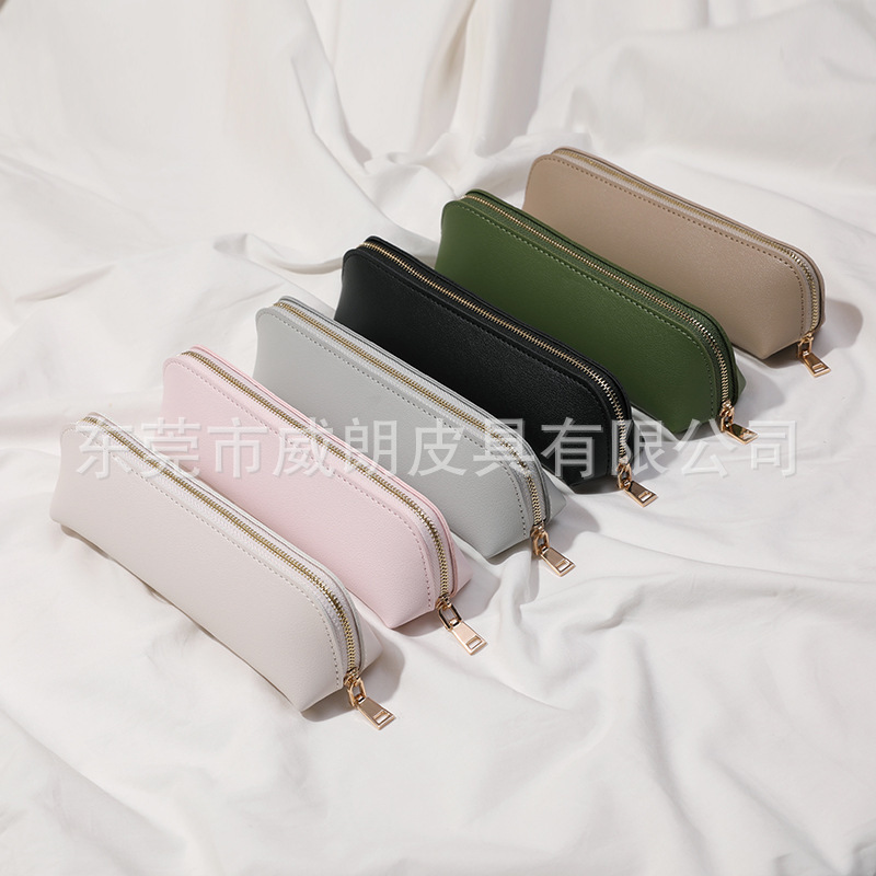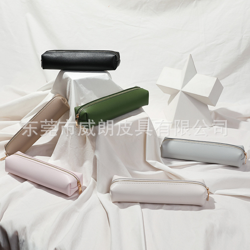 Ins風シンプルなオフィスpu収納バッグペンバッグ多機能ジッパー学生文房具ケース小型軽量ペンバッグ