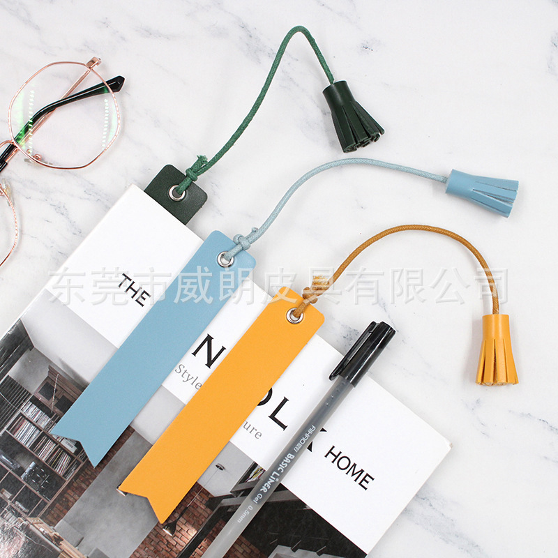 シンプルなpu革のタッセルのしおりのアイデアファッション学生の本のページのしおりの分類器