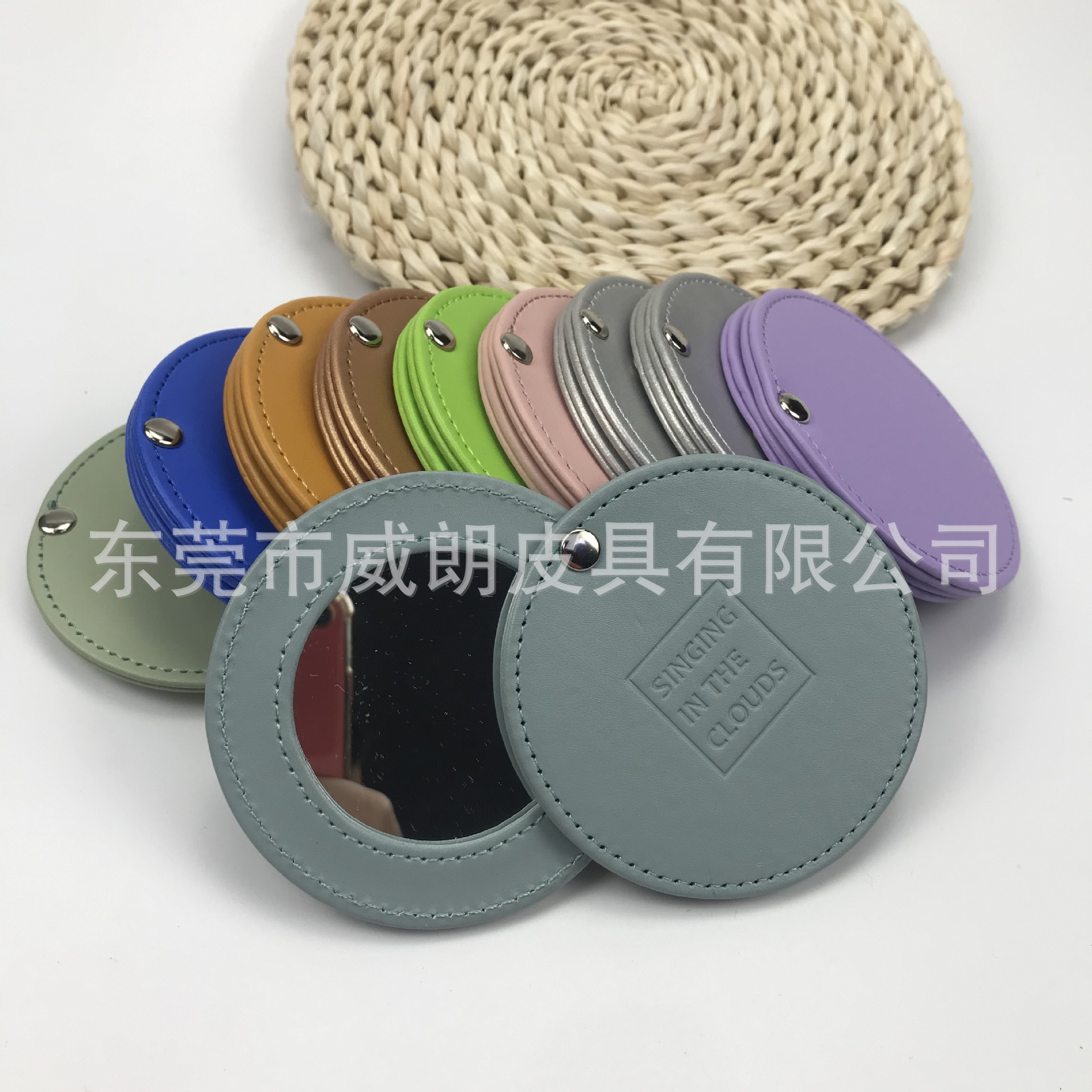 多色シンプルpu化粧鏡ファッションモデル携帯型ミニ鏡円形皮質回転式化粧鏡