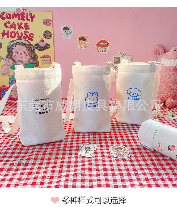 シンプルな水カップ斜めショルダーバッグ携帯外出ミルクティー飲料式キャンバス水カップバック式保護カバー収納バッグ