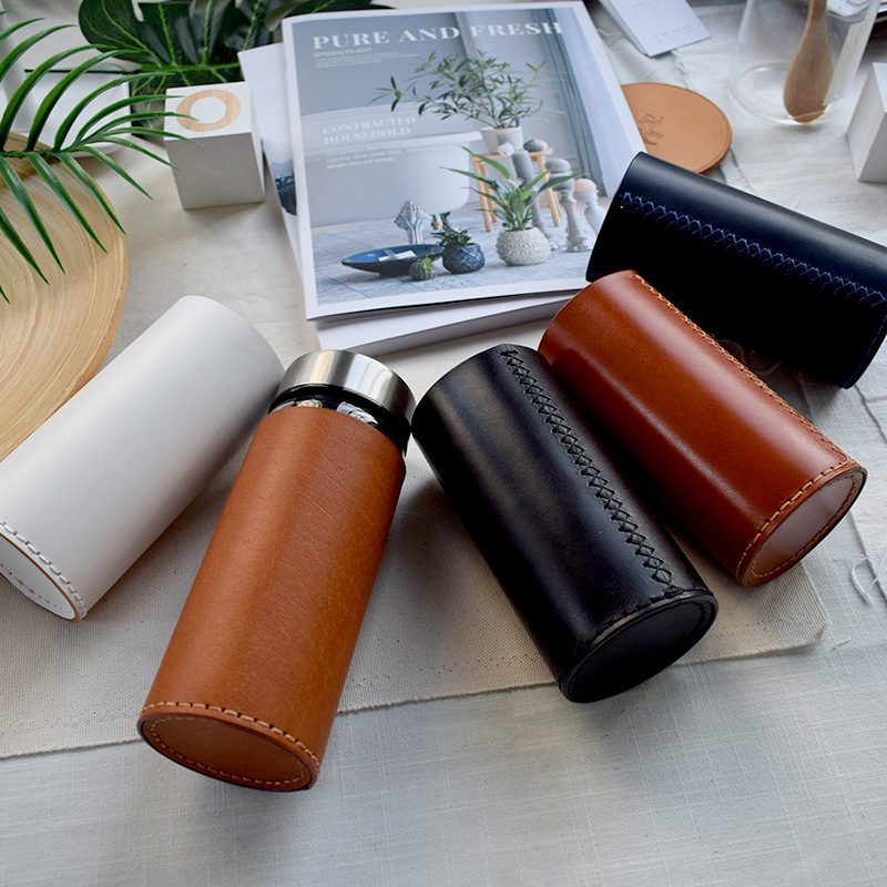 復古皮革保温カップセットグラス皮カバー衝突防止カップセットロゴ