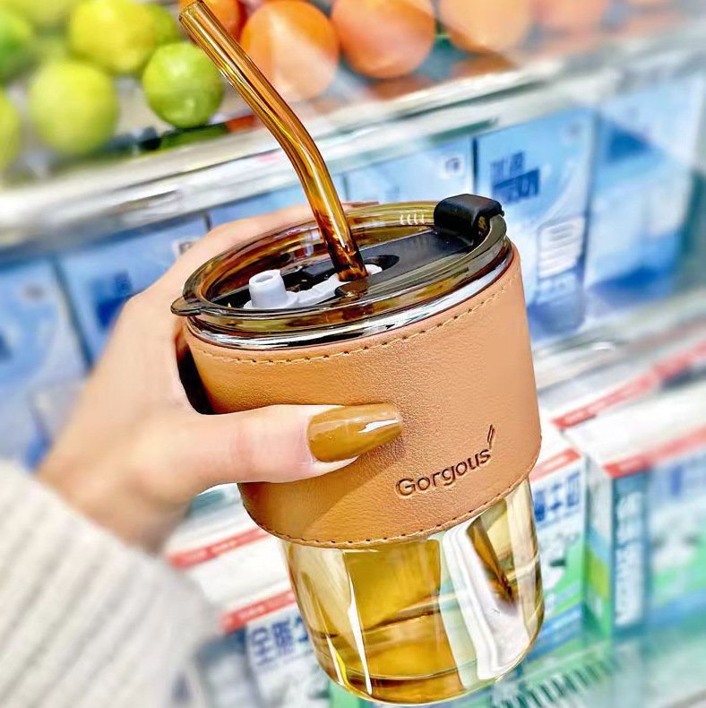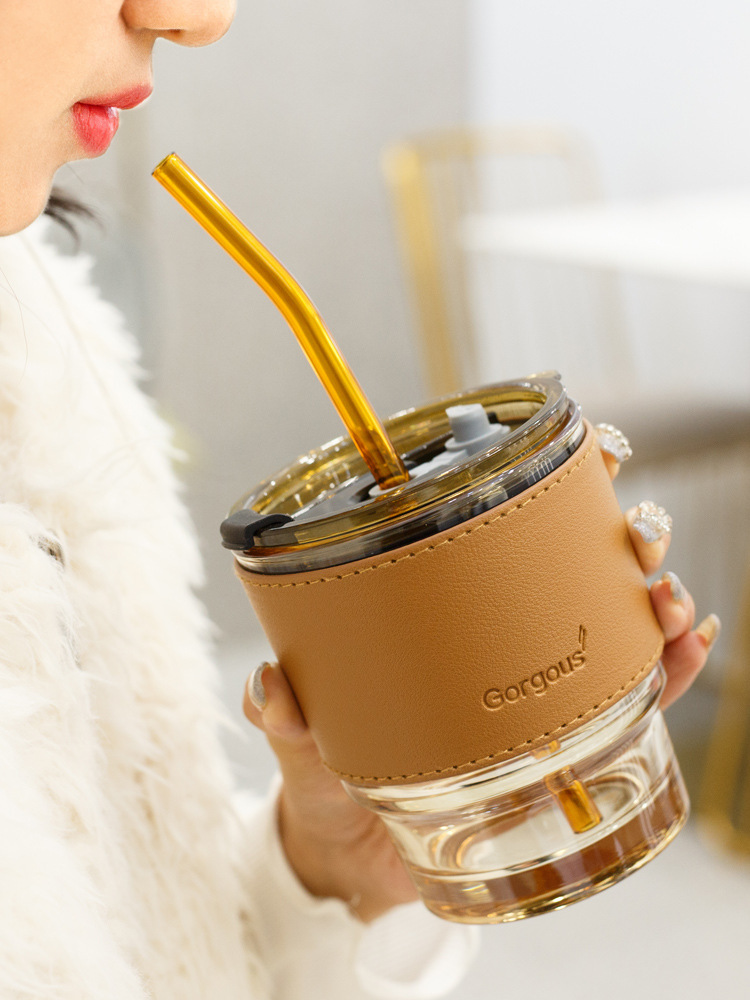 ディザトーン爆型ガラスコップ断熱滑り止めカップセットins風コーヒーミルクティーpu革カップセット