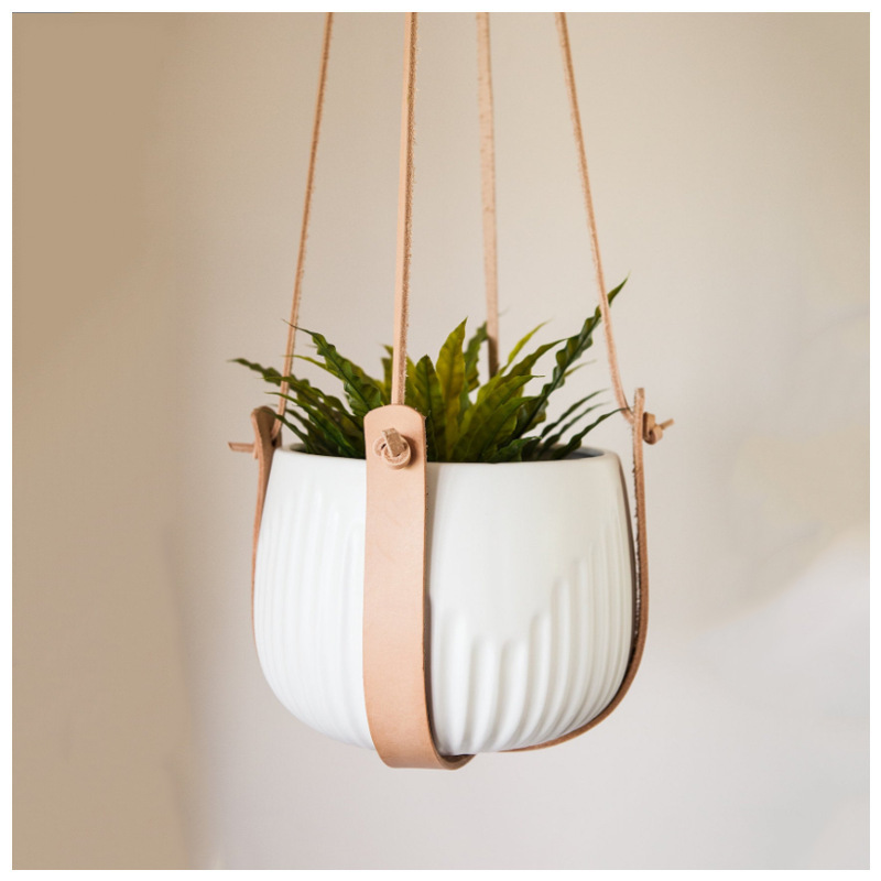 Puレザーストラップ吊りバスケット植木鉢創意室内高級軽豪華吊り式バスケット底園芸吊りバスケット吊りロープ
