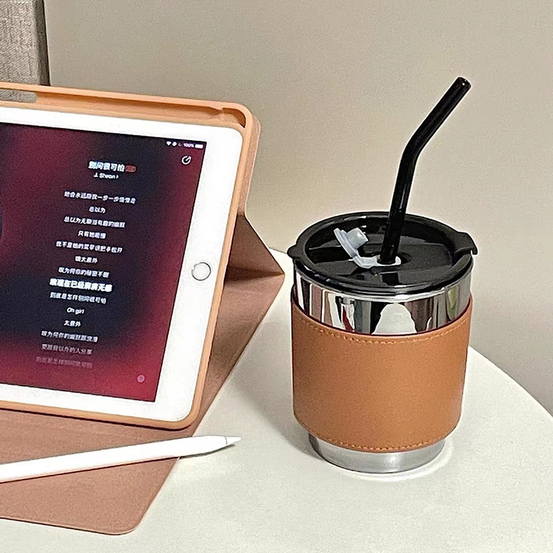 国境を越えて人気のある取り外し可能なチェーンカップセット携帯insハンディコーヒーミルクティー断熱転倒防止革カップセット