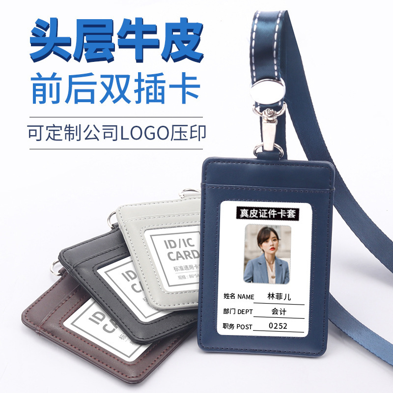 新商品発売皮革社員証セット皮質工牌業務証明書カードセット胸カード印刷可能ロゴ