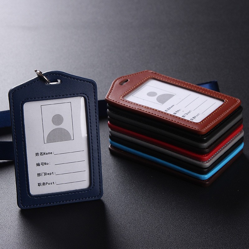 Pu革の仕事証カードカバーの従業員カードカバーの学校カードのバスカードのバッジカードのカードカバーのストラップ付き