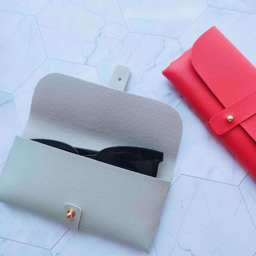 シンプルなファッションは、革の金属ボタンの四角い眼鏡ケースのソフトバッグpvc革サングラス眼鏡ケースを持っています
