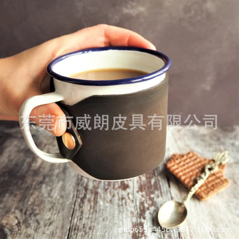 亚马逊新款复古疯马牛皮杯套 隔热防烫奶茶咖啡杯保护套 可印logo