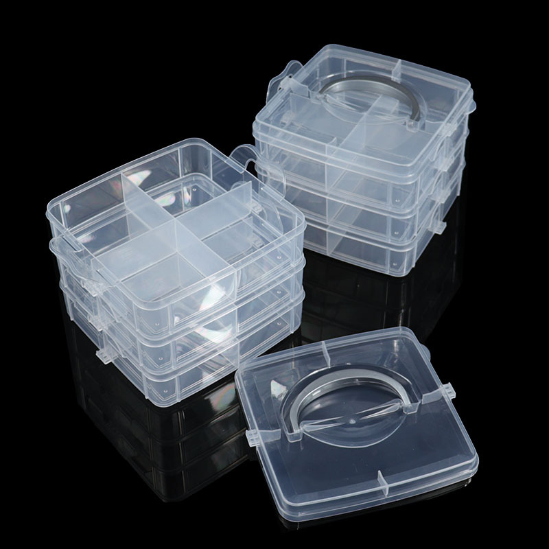 小さいサイズの3層の装飾品の収納箱は12格の透明なプラスチックの箱を固定します。