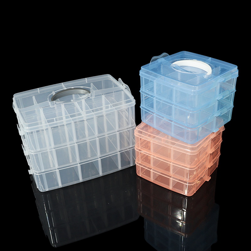 収納ボックスプラスチック手持ちアクセサリー収納ボックス三層取り外し可能透明化粧品玩具収納ボックス卸売り