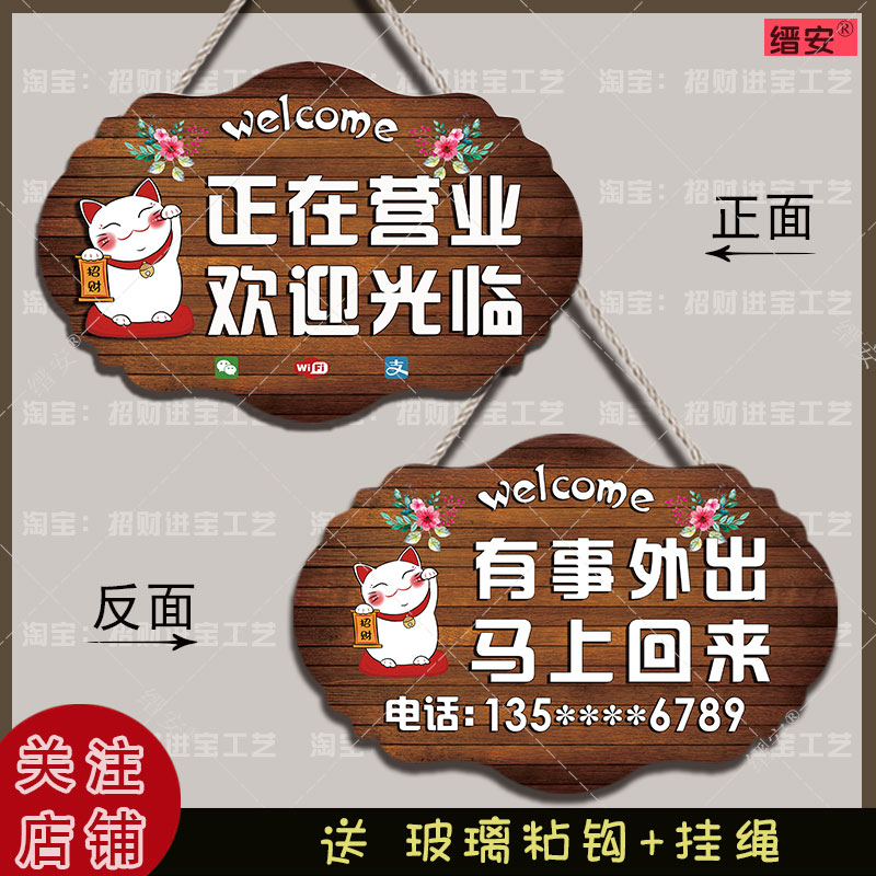営業中に看板を掲げて、店主が近くに看板を飾って、用事があって電話の看板を出すことを歓迎します