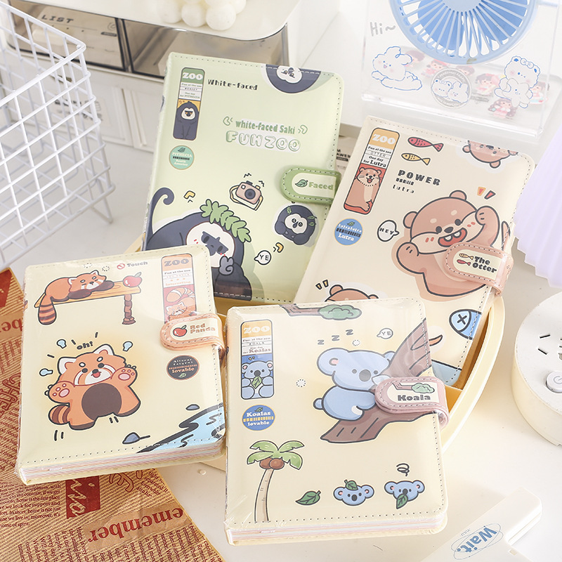 楽しい動物園 36k カラー ページ磁気バックル レザー ブックかわいい漫画スナップ バックル ハンドブック学生ハードカバー ノートブック