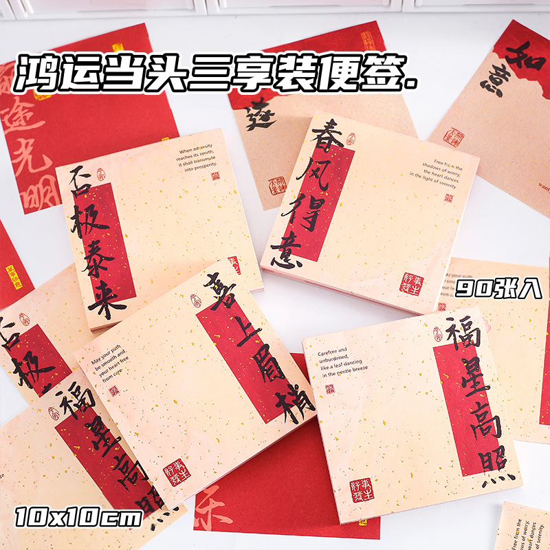 幸運の頭 3パック N回貼り付け 90枚付箋 天開景運祝福テキスト メモマーク メッセージ付箋