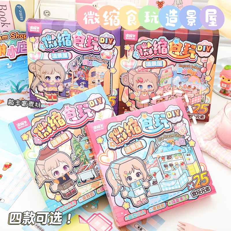 ミニチュア DIY 食品おもちゃハウス手作り DIY 女の子と子供のドレスアップシーンステッカーブックピンチステッカー静かな本