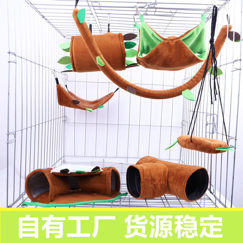 小寵ぬいぐるみハムスターの葉ハンモックの道のドリルのブランコの7点セットの花の枝のリスの保温綿の吊り巣