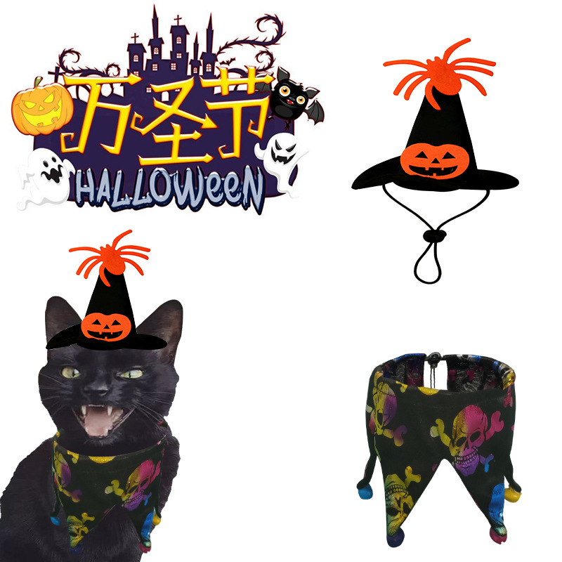 新しいハロウィーン犬の帽子は首を囲む頭蓋模様の猫の帽子セット猫ハロウィーンマフラーアクセサリー
