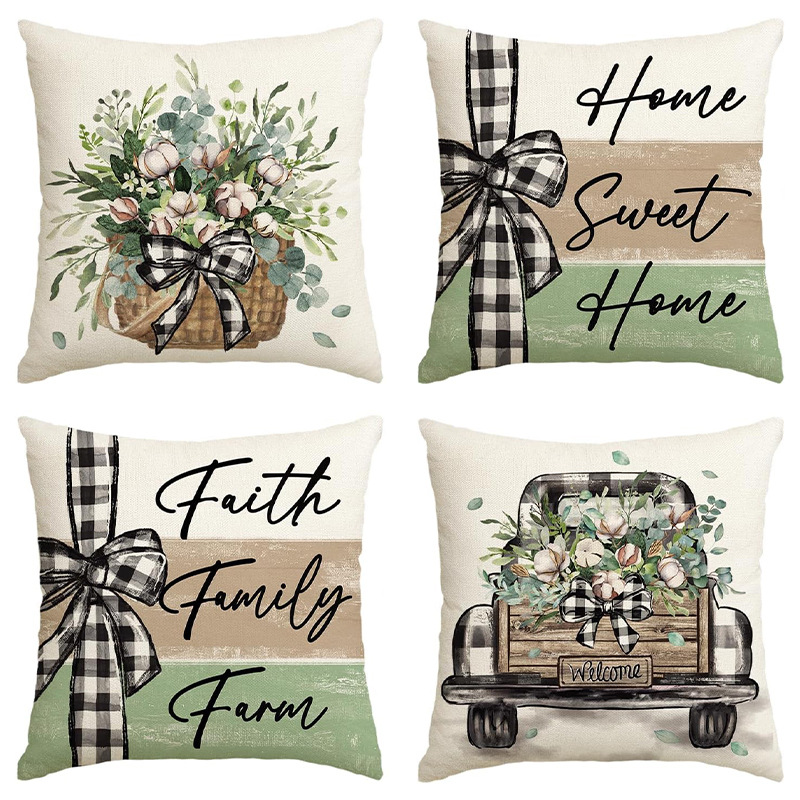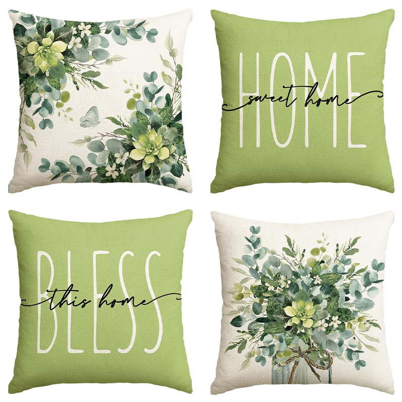 アマゾン春の新植物プリント枕カバーリネンレター装飾リビングルームソファ枕カバー床カバー