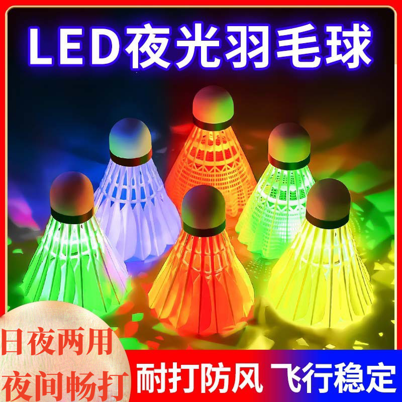 発光バドミントン本物のナイロン発光ガチョウの羽ボールプラスチックライト付き子供用夜間防風超耐久性屋外