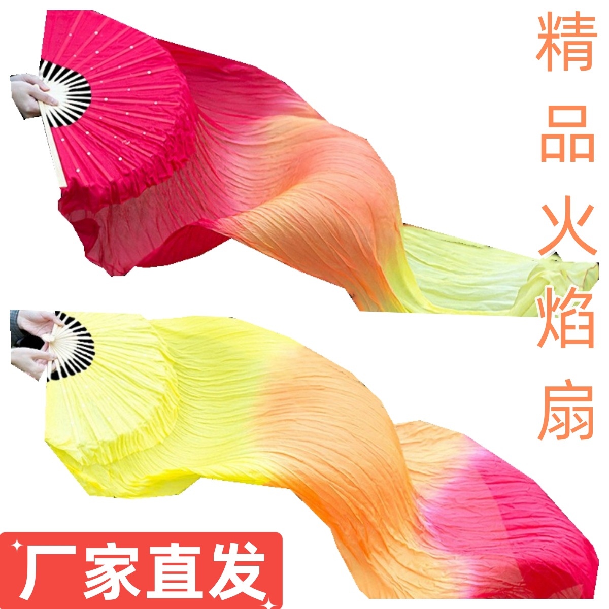 中国式扇子延長ヤンコ扇風機三色グラデーション炎扇風機長絹広場舞長扇風機ヤンコ扇風機
