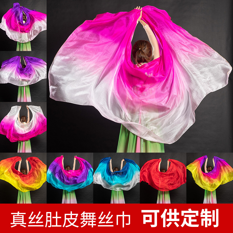 卸売りのベリーダンスのシルクのダンスの手の糸のグラデーションの七色の手は糸の東方のダンスの演技の道具を投げます。