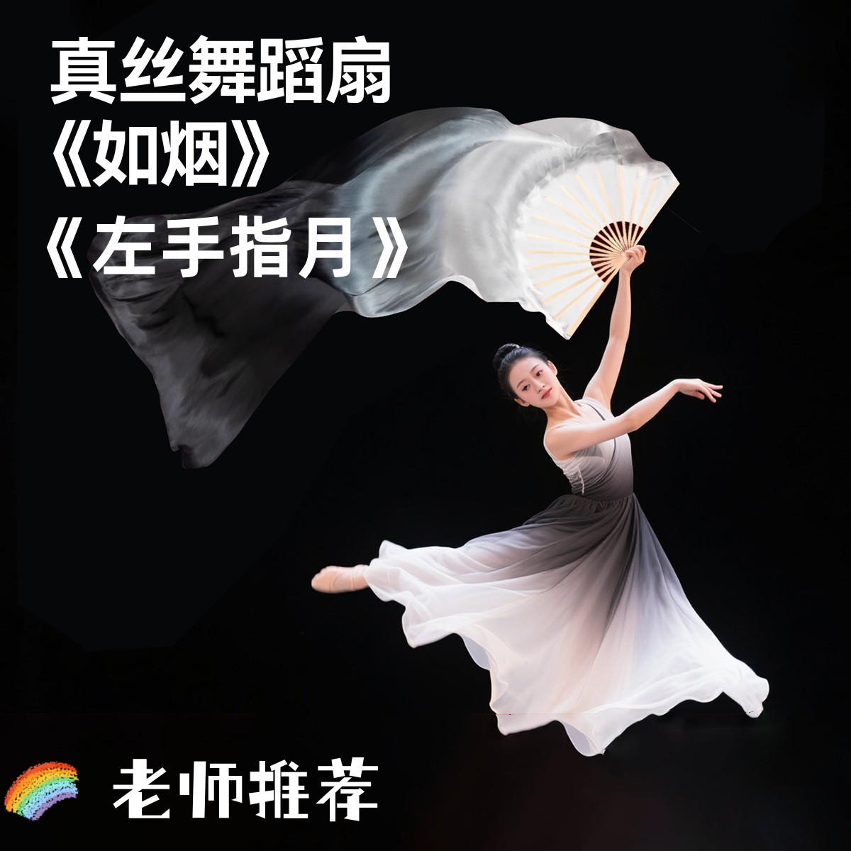 古典的なダンス扇子のシルク舞踏扇の長い扇子の白黒のグラデーションの左手の指の月は煙のようです。