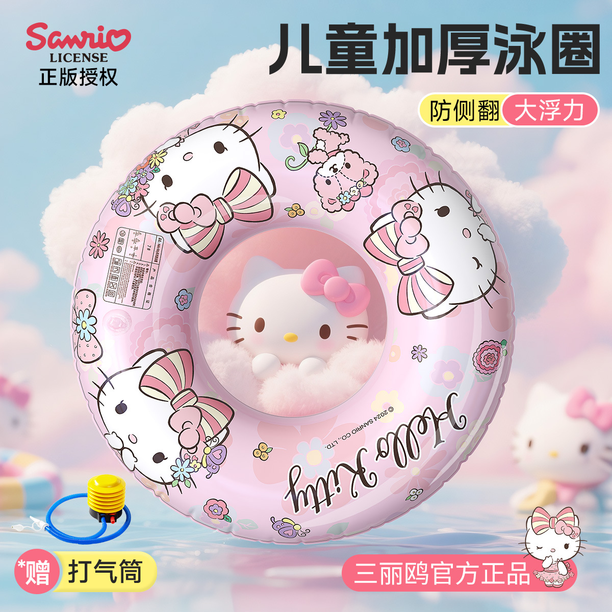 サンリオ ハローキティ 子供用浮き輪 3歳以上の女の子と大人用 厚みのあるインフレータブル水風船 ベビー救命浮輪