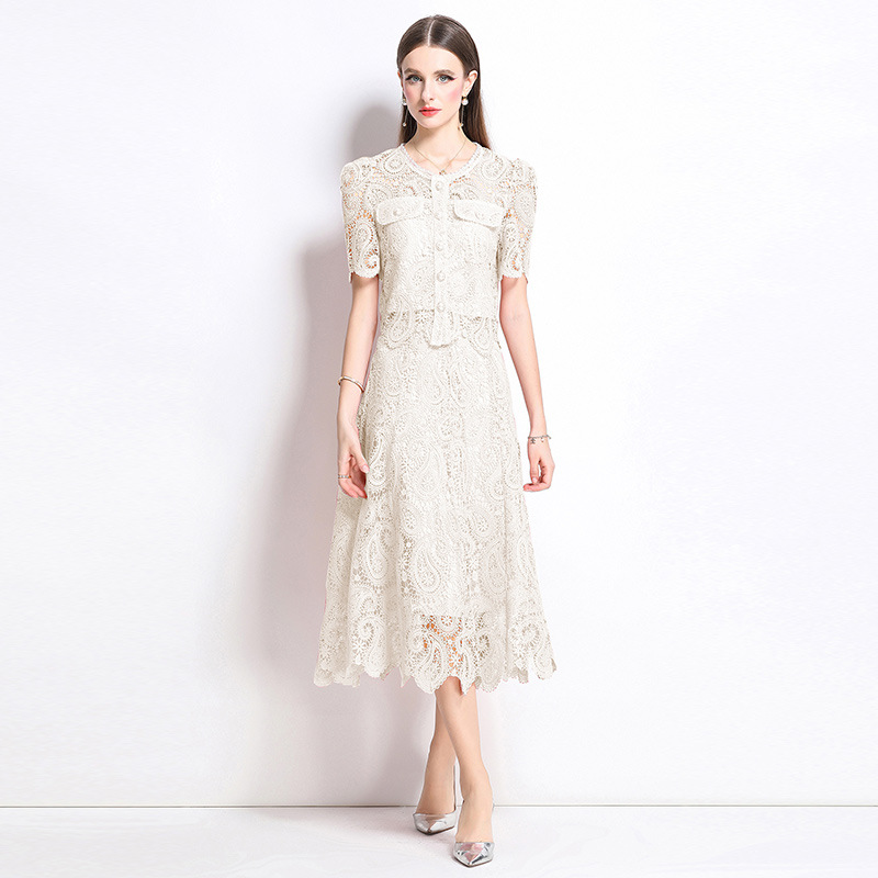 爆街減齢ファッションスーツ2025新型女装夏流行洋気レーススカート2点セットスカート
