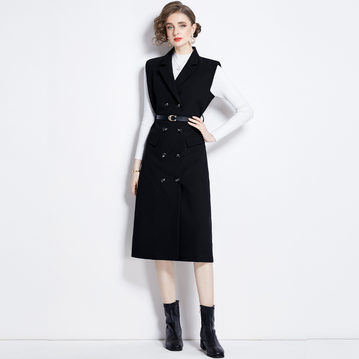 高級感のある豪華な名媛気質のノースリーブの丸首は腰を収めて痩せています。