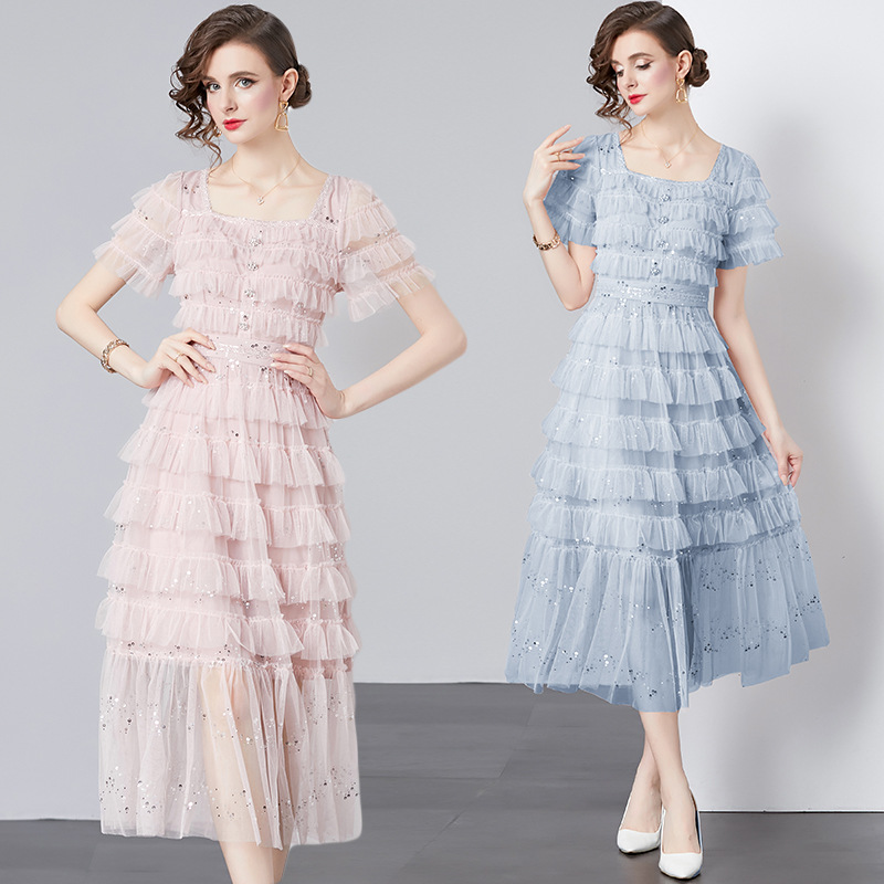 甘くてセクシーなロングスカート、夏服2024新作レディース花柄メッシュ妖精ドレス、ロング丈でとても妖精のような甘さ