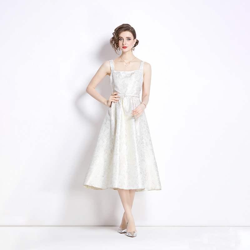 名媛高級感レースワンピース女性夏フック花刺繍デザイン感小衆シック娘感気質スカート