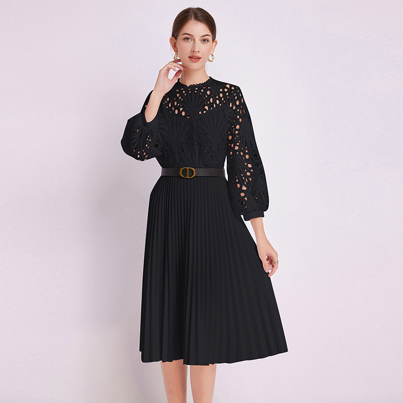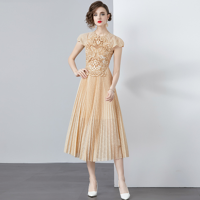 ベトナム2024夏新高級感軽贅沢洋気絶美アンドロメダ腰レース刺繍百ひだワンピース