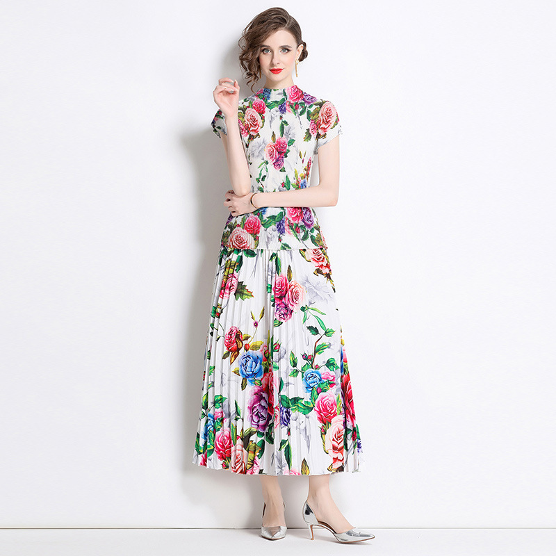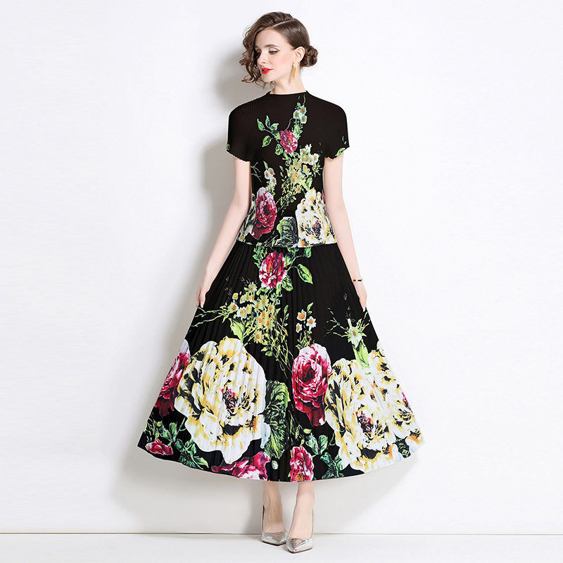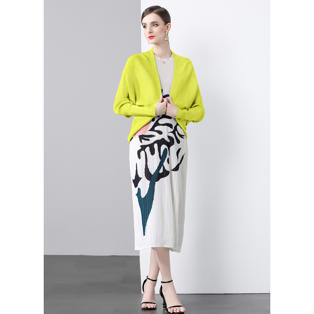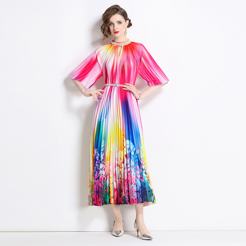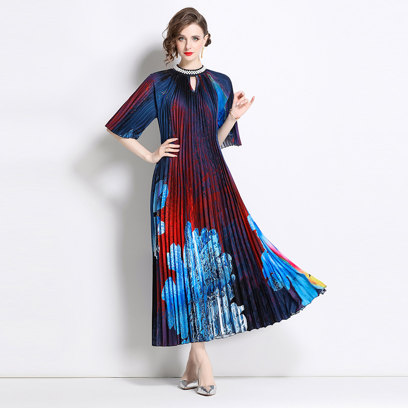 オリジナルの2024ハイエンドのビーズの位置付けのプリントのしわの真珠は百のしわの長いスカートを掛けます。