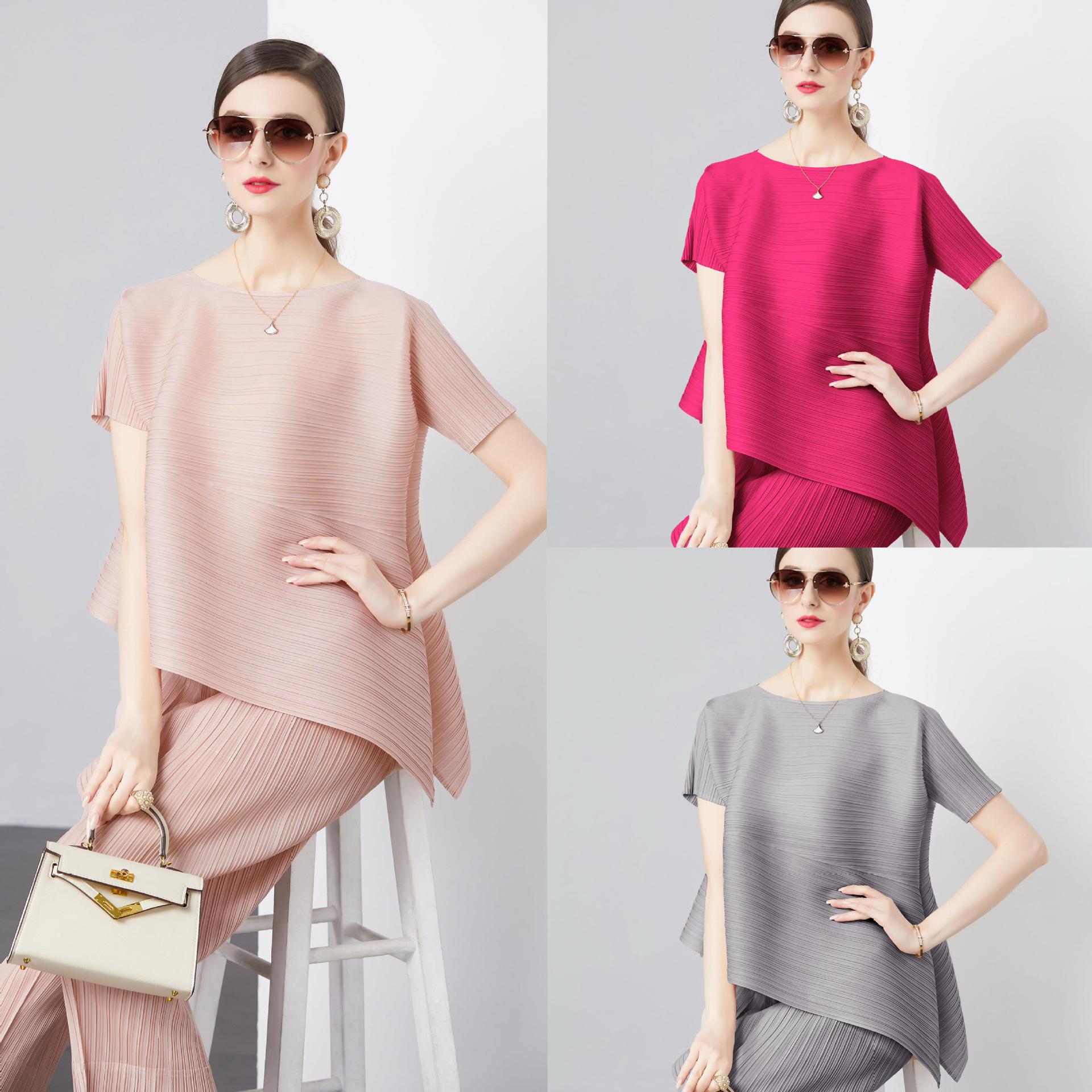 三宅の不規則な純色のしわの上着の半袖の夏のゆったりとしています。