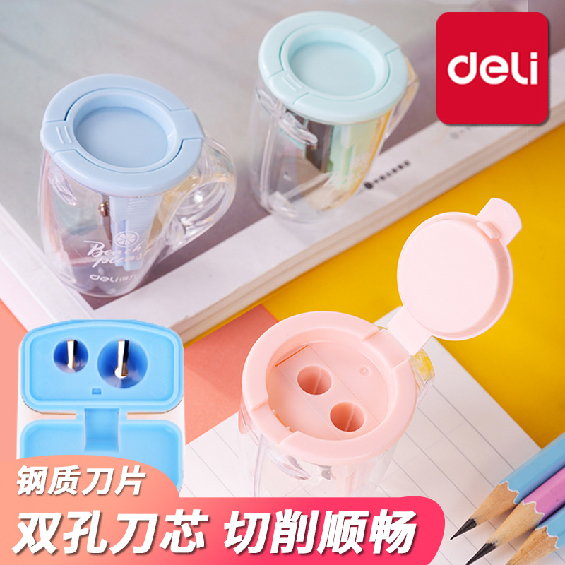 デリ 0551 学生用鉛筆削り、かわいいミニ鉛筆削り、クリエイティブなティーカップ型鉛筆削り、二穴鉛筆削り
