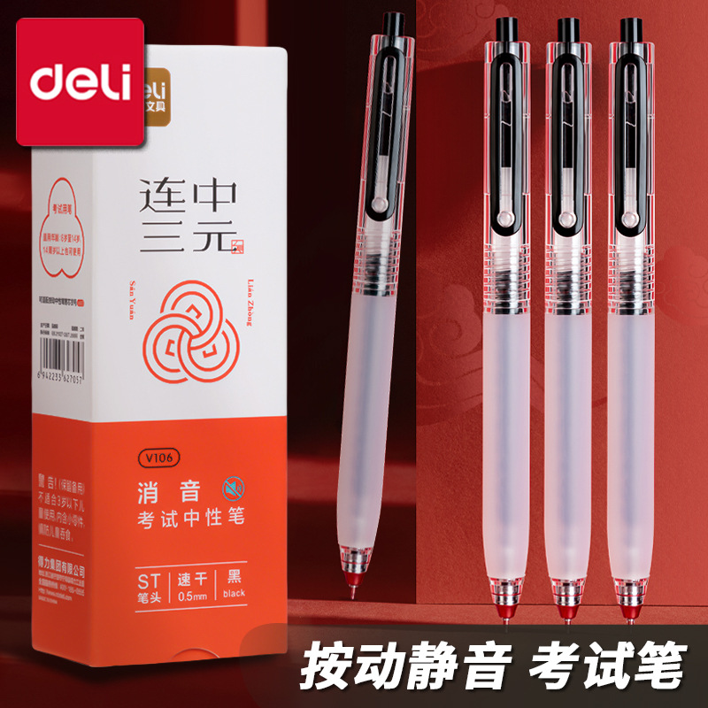 デリ三元V106 静音プレスゲルペン 学生筆記用黒ペン 試験専用速乾スムースペン
