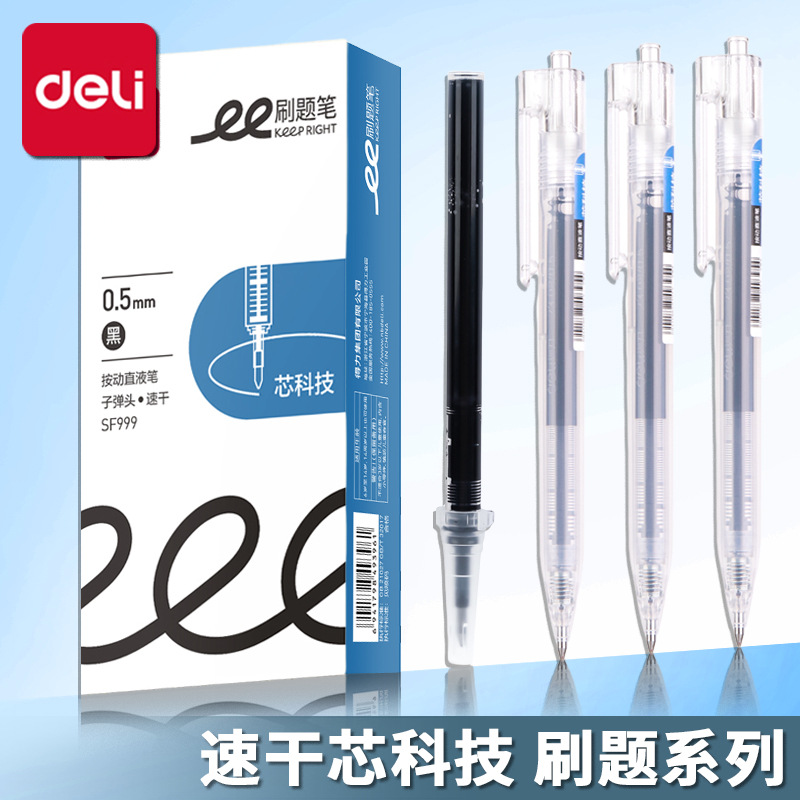 デリプレス速乾ストレート液体ペン 0.5 学生筆ペン大容量ゲルペンオフィス文具黒ペン