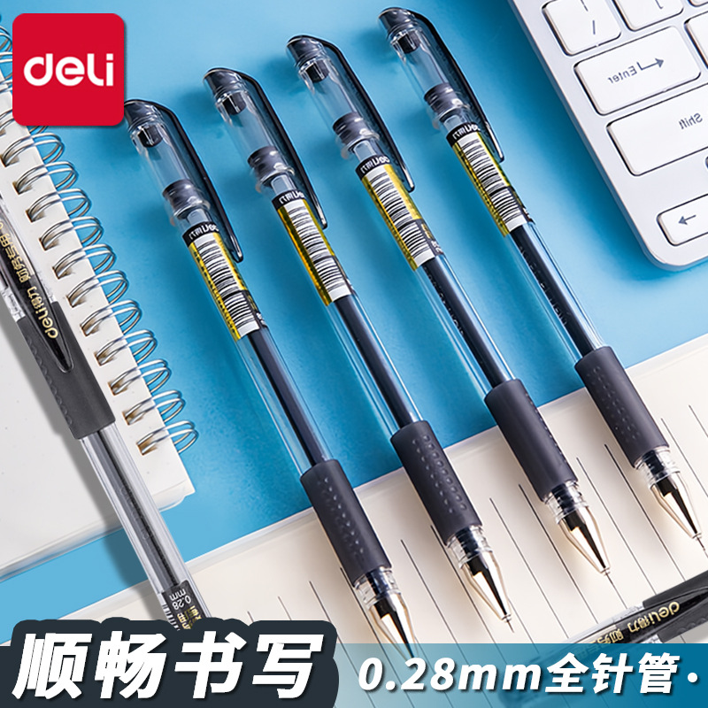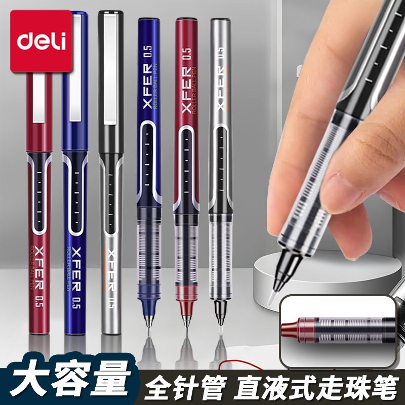 デリ 0.5 フルニードルチューブストレート液体ボールペンオフィス黒水ペン学生文具大容量キャップゲルペン
