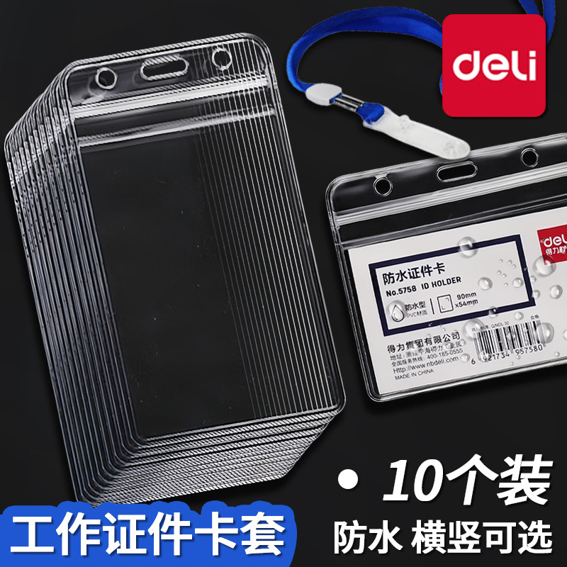 デリ 5758 防水 ID カード ワークカード ケース 10 パック カード ホルダー プラスチック透明バッジ ワークカード カード ホルダー