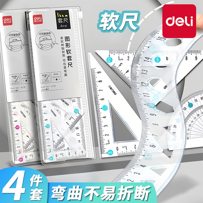デリ ソフト定規 試験用製図定規 小学生定規 15cm 多機能スケール 分度器 測定セット