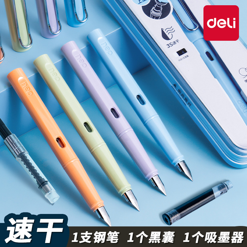 デリ S5 速乾性書道ペン インク吸収式 EF 明尖 小学生用品 交換用インク袋 速乾性ペンセット