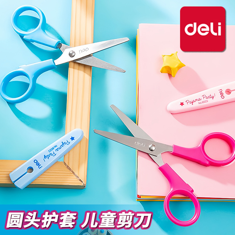 デリ 6022 ハサミ学生文具紙切断子供の手芸クラスミニカードポータブル小型はさみ安全シース付き