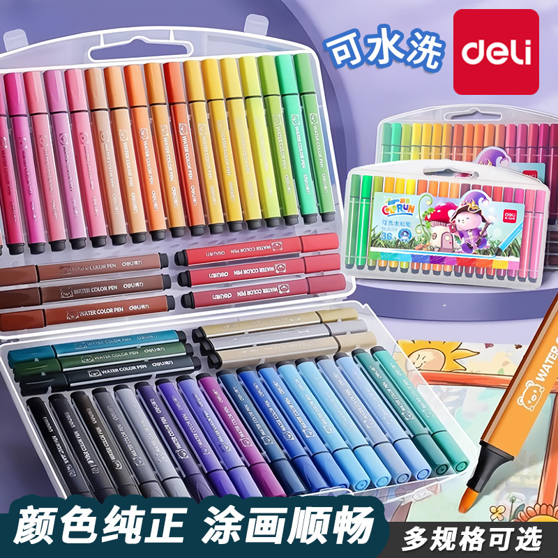 デリ 70720 水彩ペン子供用絵筆学生漫画水彩ペンセット洗える太い三角棒カラーペン