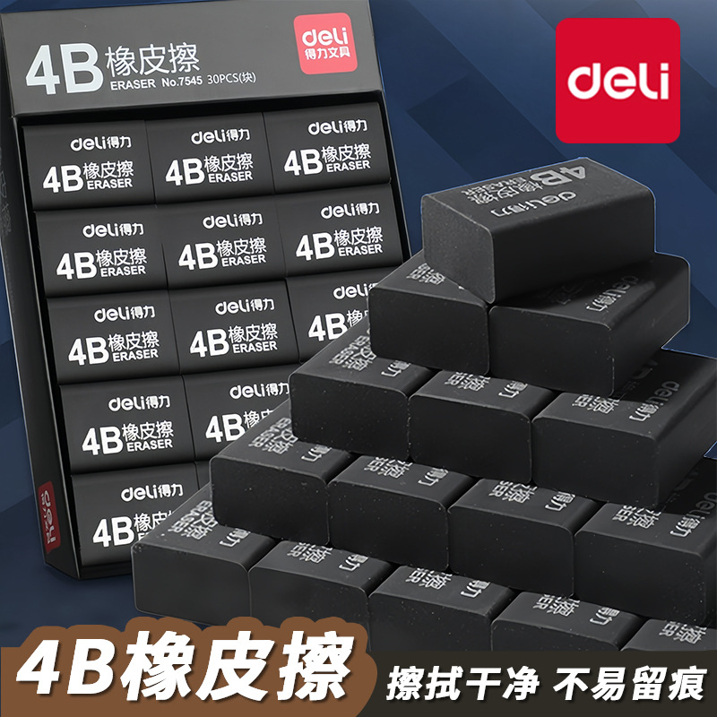 デリ 7545 レザーライク消しゴム ブラック 簡単に拭ける 中型 洗える 学生消しゴム 試験 描画 アート 4B 消しゴム