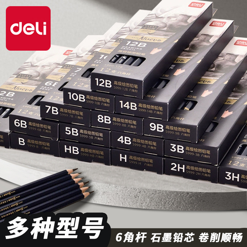 デリ S999 アート描画 2B 鉛筆スケッチ鉛筆六角筆記絵画製図学生試験セットペン