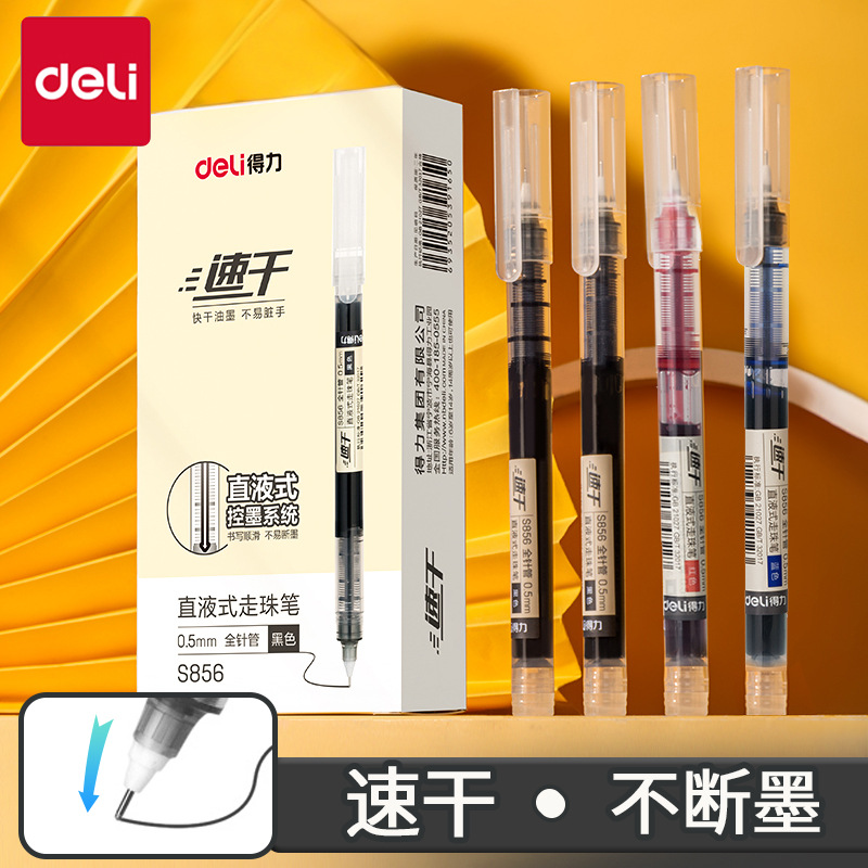 有力文房具S856直液ペン学生用中性ペン直液式ボールペン0.5全針管黒ペンオフィス