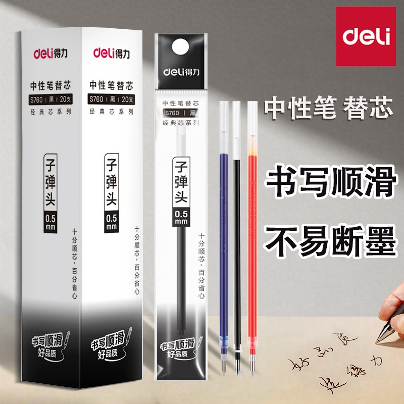 有力オフィス文房具フード付きS760中性ペン0.5mm標準弾丸交換芯黒色赤色青色