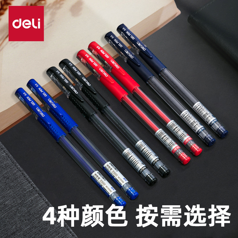 得力6600es中性ペン0.5子弾頭黒芯黒赤墨蘭青学生事務用ペン