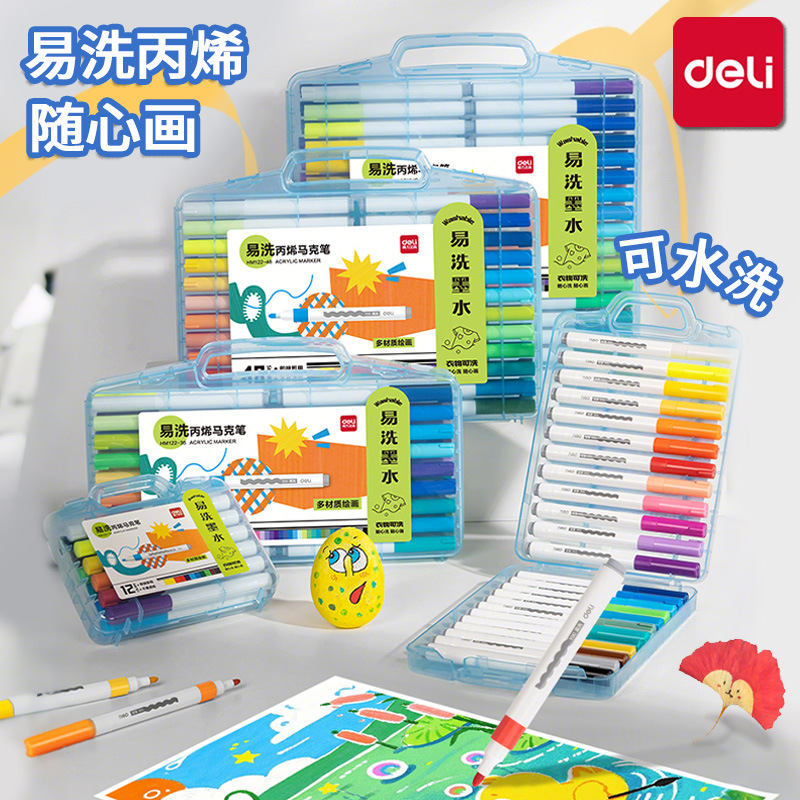 デリ 洗いやすい丸棒アクリルマーカーペン 大容量 積み重ね可能 不透明アクリルペン 洗える子供用アクリル