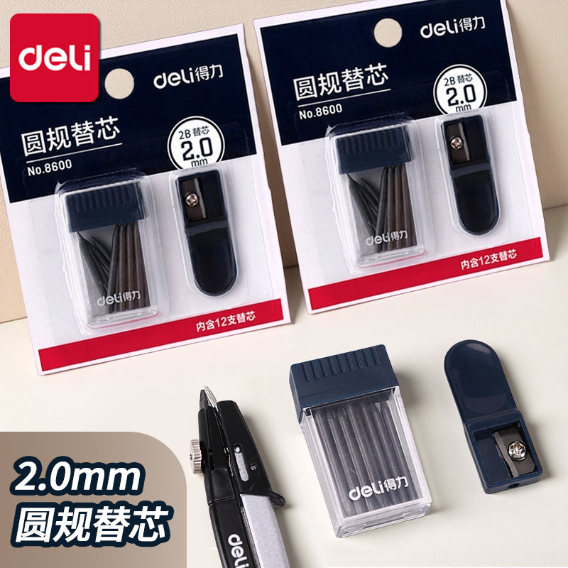 Deli 8600 コンパス替芯 12 透明箱入り鉛筆削り付き学生がグラファイトを学ぶためのコンパクトでポータブル